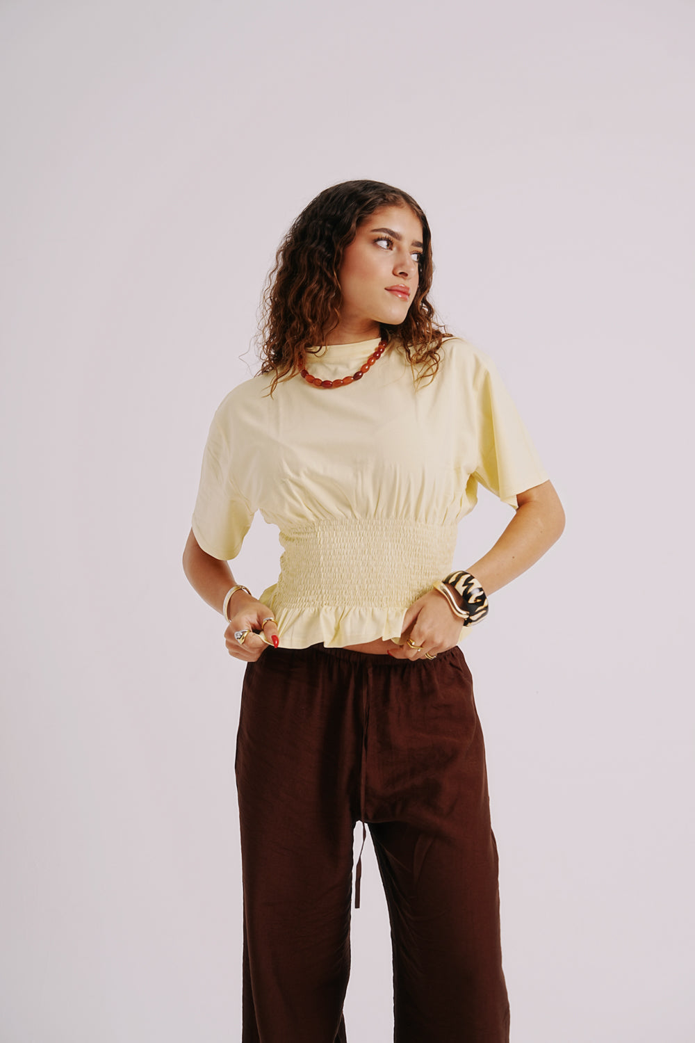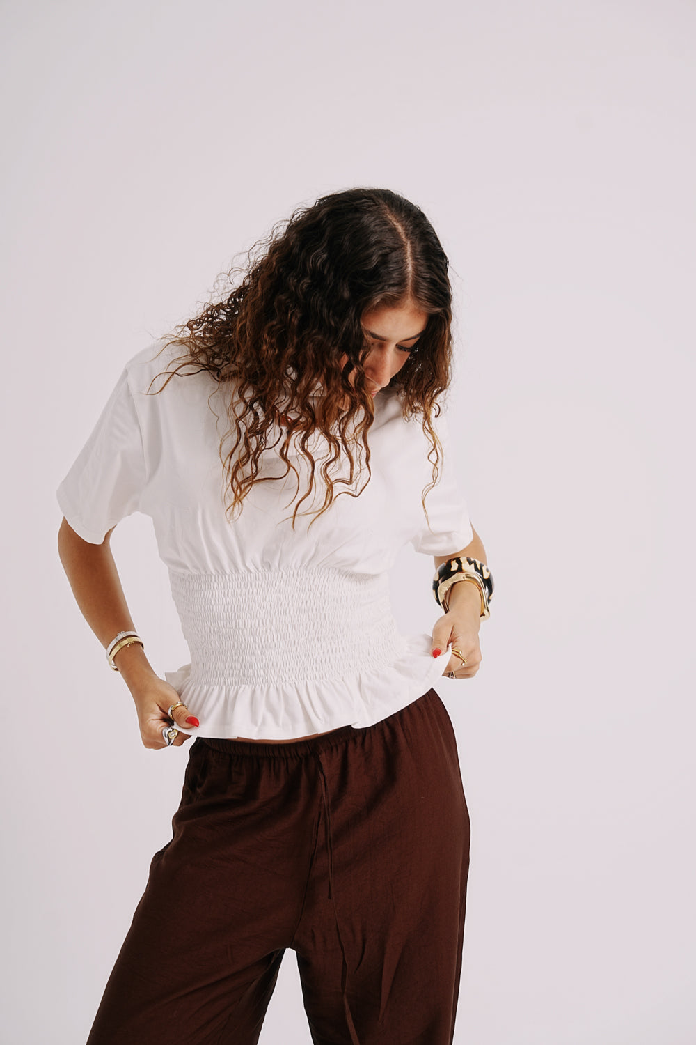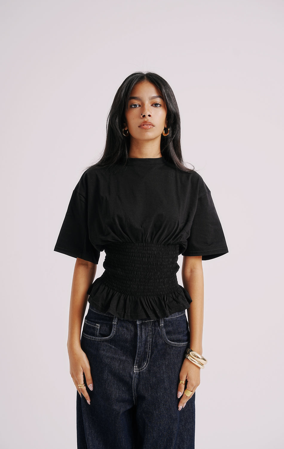 The smock top cinches at the waist to give you that perfectly snatched silhouette. Its playful design adds a fun twist to your everyday look while keeping you comfortable and stylish all day long. Perfect for turning heads with effortless charm!